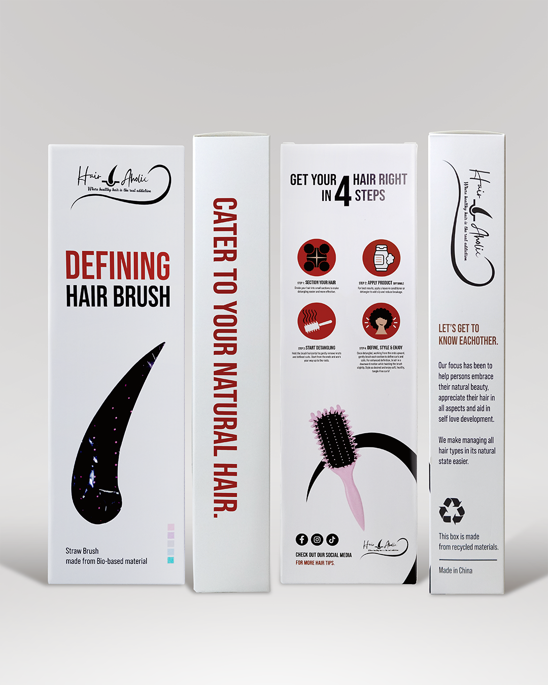 Bring your curls to life with the Hairaholics Defining Hair Brush. Made from eco-friendly bio-based material, this brush gently detangles, defines, and reduces frizz, leaving your natural curls, coils, and kinks smooth, shiny, and full of bounce. Lightweight, durable, and perfect for every wash day or styling routine.